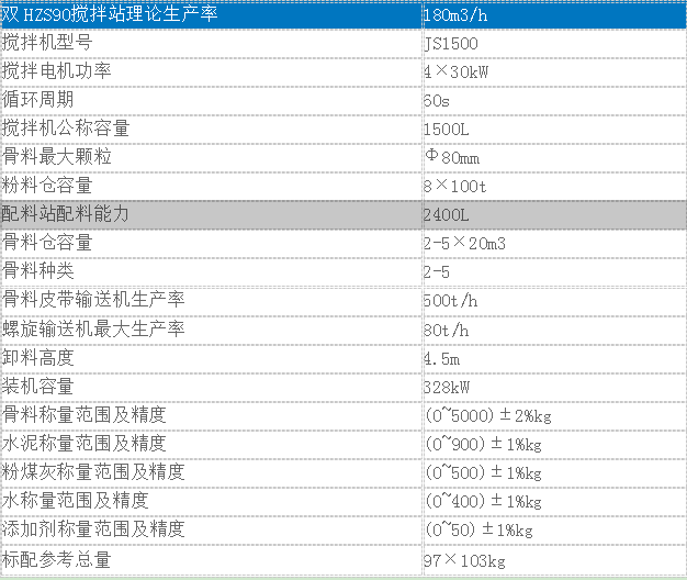 2HZS90商品大型混凝土攪拌站技術參數(shù)