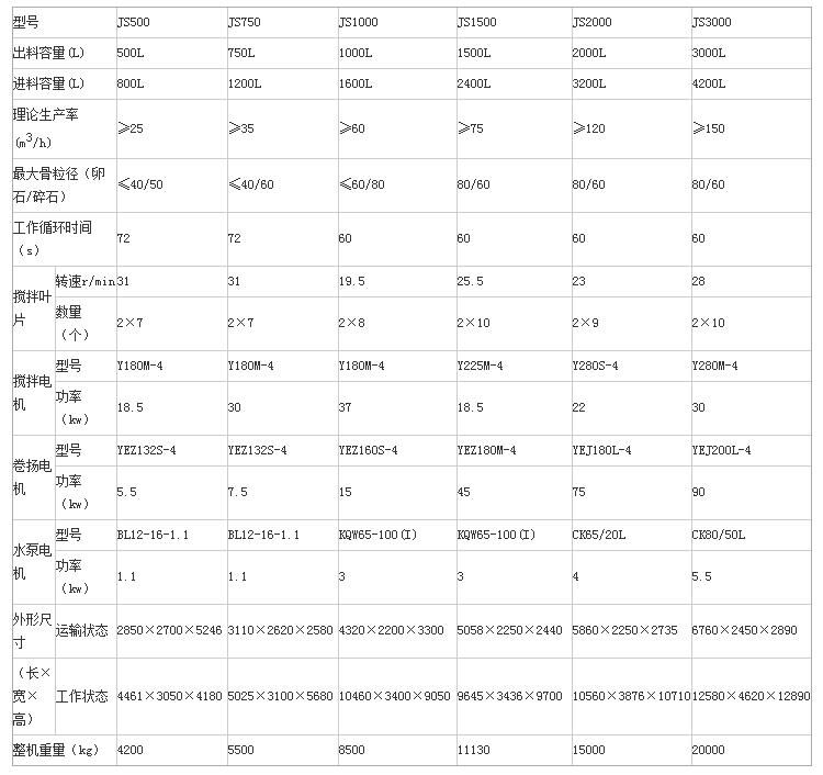 JS2000攪拌機詳細(xì)配置參數(shù),億立公司出品