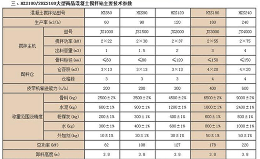 HZS180型混凝土攪拌站理論生產(chǎn)率180m3/h,攪拌機(jī)型號(hào)JS3000,攪拌主機(jī)功率為110KW,整套設(shè)備的總功率為200KW,配料機(jī)的倉(cāng)格數(shù)為4格,配料能力240m3,水泥稱量范圍及精度(0~1500)±1%kg,外加劑稱量范圍及精度(0~50)±1%kg,卸料高度為4米,配合螺旋輸送泵能輸送到更高的高度。HZS180站包含兩排水泥倉(cāng)及一系列螺旋輸送機(jī),由一個(gè)微機(jī)控制室側(cè)控制整個(gè)混凝土攪拌站的作業(yè)。可同時(shí)向兩輛混凝土運(yùn)輸車輸送攪拌物料。同樣采用最新設(shè)計(jì)思路的電子稱量、微機(jī)控制、數(shù)字顯示等控制技術(shù),電子稱量均具緩沖裝置及自動(dòng)補(bǔ)償功能,計(jì)量精度高。砂石上料系統(tǒng)采用大寬度人字皮帶上料,可以按需求設(shè)置人行安檢走道,眾多優(yōu)點(diǎn)使HZS系列180攪拌站成為商品混凝土攪拌站企業(yè)、廣大施工單位最求高質(zhì)量混的凝土攪拌設(shè)備的理想選擇。