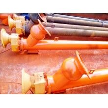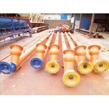 2. 整機體積小、轉速高、確保快速均勻輸送。橫斷面的外形尺寸不大,便于在若干個位置上進行卸載,禁閉機殼的蓋子可達到較好的密封。但單位動力消耗高,運行中物料易受粉碎,對過載敏感,要求均勻的加料,螺旋、機殼和吊軸承磨損較嚴重。
