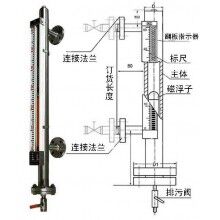 液位計(jì)根據(jù)浮力原理,浮子在測(cè)量管內(nèi)隨液位的升降而上下移動(dòng),浮子內(nèi)的永久磁鋼通過磁耦合作用,驅(qū)動(dòng)紅、白色翻柱翻轉(zhuǎn)180’液位上升時(shí),翻柱由白色轉(zhuǎn)為紅色,下降時(shí),翻柱由紅色轉(zhuǎn)為白色,從而實(shí)現(xiàn)液位的指示。