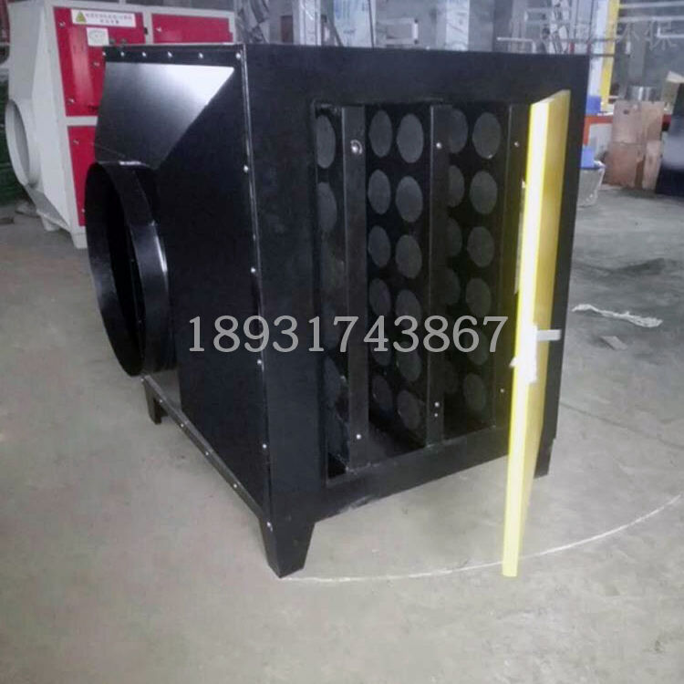 活性炭吸附裝置工作原理:該裝置在系統(tǒng)主風(fēng)機的作用下,廢氣從塔體進風(fēng)口處進入吸附塔體內(nèi)的氣箱預(yù)處理設(shè)備或功能段,冷卻降溫、過濾除塵除油霧等之后,經(jīng)過分配進入到塔體內(nèi)的各吸附單元;利用高性能活性碳吸附劑固體本身的表面作用力將有機廢氣分子之吸附質(zhì)吸引附著在吸附劑表面,經(jīng)吸附后的干凈氣體透過吸附單元進入塔體內(nèi)的凈氣室并匯集至出風(fēng)口排出。