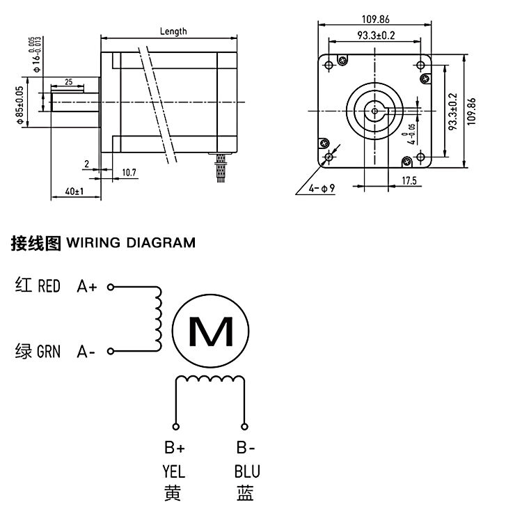 兩相1.8°混合式步進電機110系列步進電機