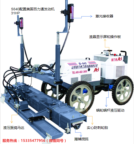 山東奧力德生產(chǎn)的新款小型混凝土激光攤鋪整平機(jī)性能特點(diǎn):