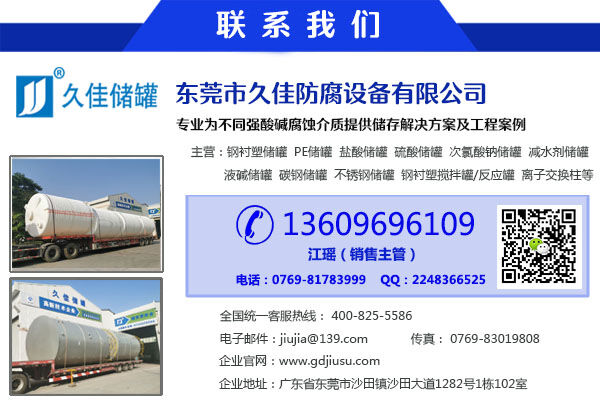 公司主要產(chǎn)品包括:久塑牌(1-125m3)立/臥式鋼襯塑(PE/PO)/碳鋼/不銹鋼儲(chǔ)罐、(5-50m3)管口一體成型PE儲(chǔ)罐、鋼襯塑攪拌罐/反應(yīng)罐/過濾罐/中和罐、離子交換柱及其它化工而腐蝕非標(biāo)準(zhǔn)設(shè)備。
