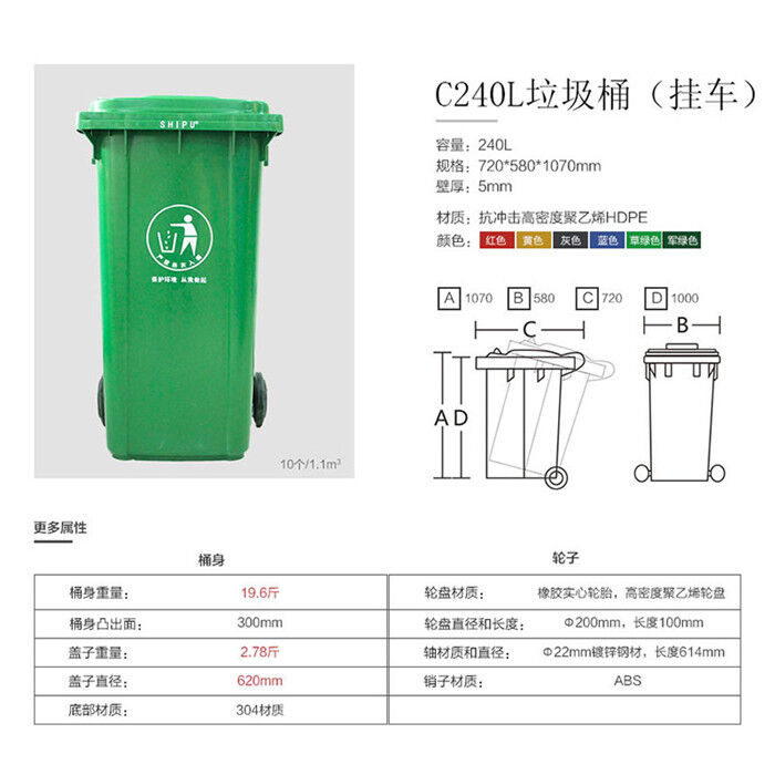 歸屬行業(yè):貴州生產(chǎn)塑料分類垃圾桶 戶外投標垃圾桶 240升帶輪可上掛車垃圾桶廠家直銷