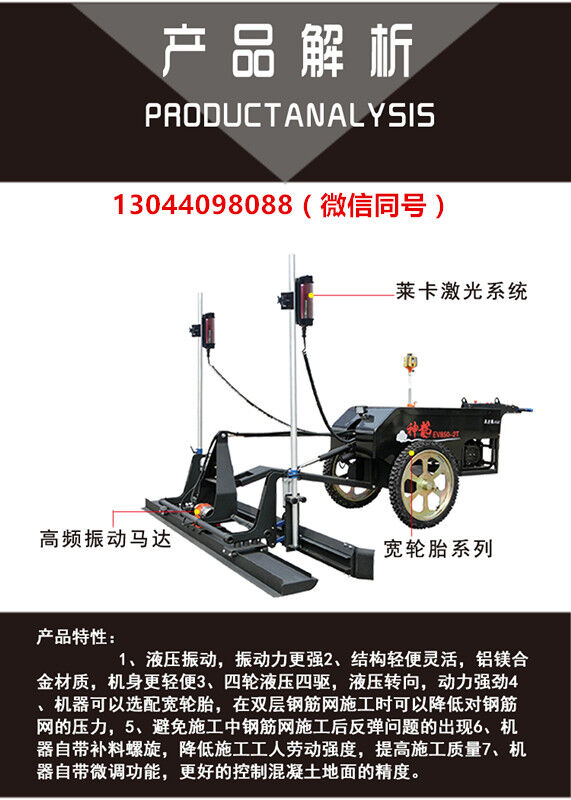 激光整平機(jī)適應(yīng)于鄉(xiāng)村道路混凝土地面、工業(yè)廠房和廠區(qū)地面,地下停車場(chǎng)地面、工業(yè)樓層地面等多元化混凝土場(chǎng)地施工,替代傳統(tǒng)振動(dòng)尺、振動(dòng)梁、振動(dòng)滾等人員多大面積累積誤差大等施工缺陷;