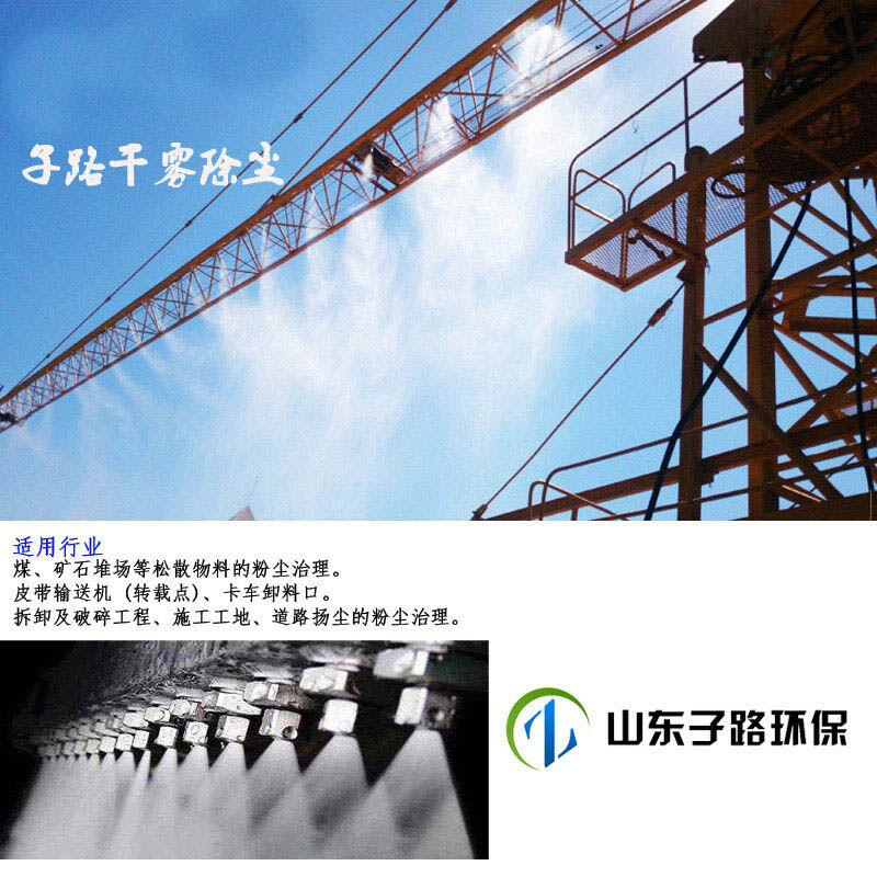 煉鋼廠制造制練、火力發(fā)電廠、煤礦選煤場(chǎng)、鐵路翻車(chē)機(jī)、電廠輸煤系統(tǒng)、車(chē)間物料貨場(chǎng)、導(dǎo)料槽、皮帶運(yùn)輸機(jī)、料場(chǎng)出入口、城市美化、人造霧景觀、人造彩虹等。