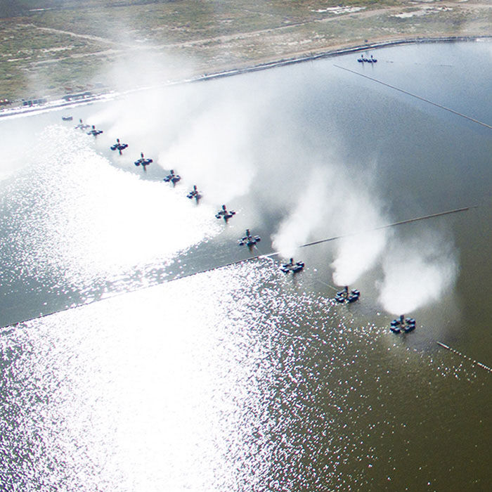通過高速旋轉(zhuǎn)葉輪將水破碎至100微米粒徑小液滴,形成水霧,利用自然天氣條件進(jìn)行蒸發(fā)。強(qiáng)制蒸發(fā)的作用:可增強(qiáng)蒸發(fā)效果14~30倍,蒸發(fā)同樣的廢水所需蒸發(fā)塘面積可降低到原來的1/10。