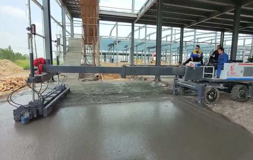 混凝土激光攤鋪機是用刮板將高出的混凝土帶走并初步刮平,達到設計要求的標高。液壓驅動振動馬達產(chǎn)生震動,頻率為6000次/分鐘,帶動整個振動板一起對混凝土產(chǎn)生振搗。激光攤鋪機找平不需要拉控制線,也不需要支側模板來控制地面標高,而由攤鋪機上的激光測控系統(tǒng)實時控制,只要激光發(fā)射器不受干擾,無論攤鋪機移動到哪里,都能確保鋪筑后的地面整體上的標高不受影響。混凝土激光攤鋪機是一種以激光為基準平面,通過實時控制整平頭,從而實現(xiàn)混凝土高精度、快速整平的設備,是降低企業(yè)施工中成本支出的手段。在經(jīng)濟蕭條下,地坪企業(yè)會通過選擇激光整平機方式施工,節(jié)約固定投資、降低人工成本,降低運營成本。實際上,企業(yè)選擇混凝土激光整平機的理由并非只有這些。 自動化程度高,勞動強度小,采用激光整平機等設備使繁重的體力勞動變?yōu)橛脵C械攤鋪、振搗、找平、提漿、抹面,使操作人員減少30%,同時減輕勞動強度。經(jīng)濟效益高應用激光整平機等設備,比傳統(tǒng)工藝節(jié)省成本2-3元/㎡,分縫少,后期維護費用降低,從而使經(jīng)濟效益明顯提高。
