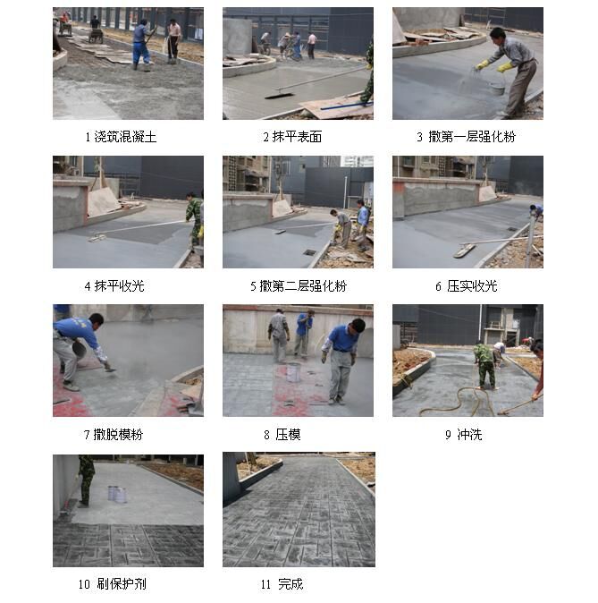 裝飾砼地面運用了表面處理技術(shù),它在砼基層面上進行表面著色強化處理,以達到裝飾效果,同時對著色強化處理過的地面進行滲透保護處理,以達到潔凈地面與保養(yǎng)地面的要求。因此,裝飾砼地面的構(gòu)造模式為基層(砼)、飾面(著色強化料)、表層(滲透保護劑)這三個基本層面構(gòu)造,這樣的構(gòu)造是良好性能與經(jīng)濟要求的平衡結(jié)果。
