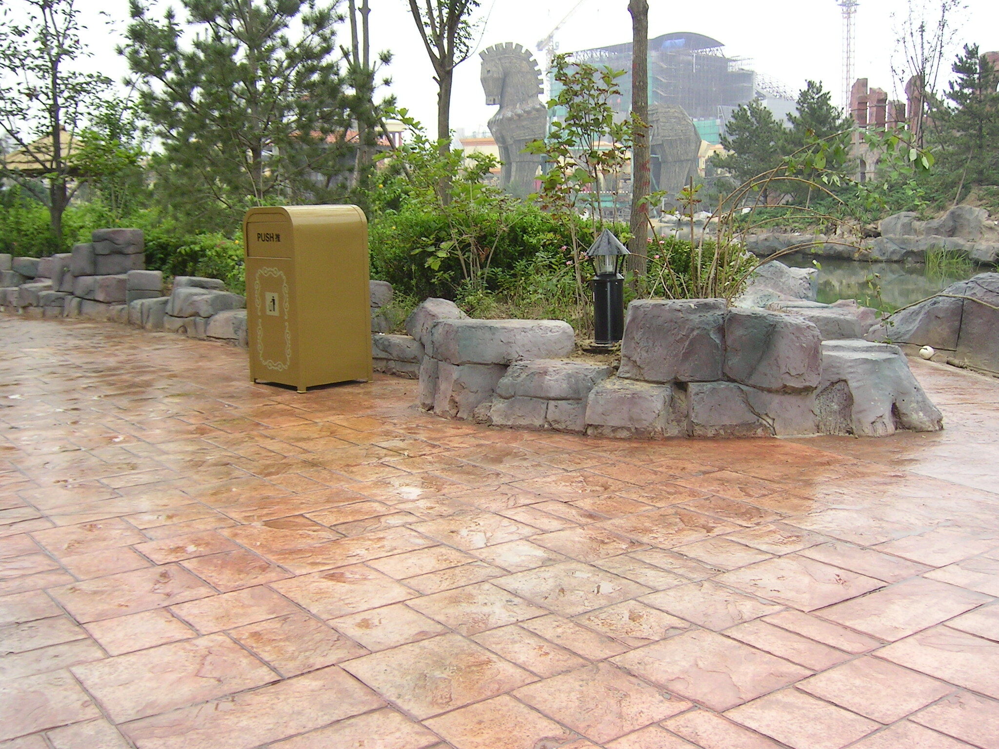 彩色壓模藝術(shù)地坪是一種新穎獨創(chuàng)的地面鋪裝體系??稍趥鹘y(tǒng)的砼材料上制作各種磚、石、木等其它材料無法達到的裝飾效果,具有圖形美觀自然、色彩豐富、質(zhì)地堅固耐用等特點,克服了傳統(tǒng)磚、石鋪設(shè)地面常有的容易松動、高低不平、縫隙長草、蟲蟻筑穴、容易起塵、路面整體性差、色彩單調(diào)、需經(jīng)常維修等特點,結(jié)合了傳統(tǒng)磚、石鋪設(shè)地面的美觀自然與砼的堅固耐用特點,是替代磚石鋪設(shè)路面的一種新型地面材料。