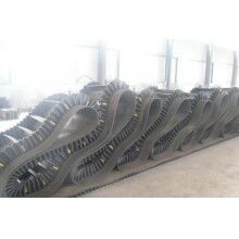 我們可以生產(chǎn)普通一般的大傾角裙邊輸送帶,是由基帶,擋邊,隔板三部分組成,三者共同作用,幫助物料提升到指定高度?;鶐В瑩踹?,隔板是通過(guò)二次硫化的方式硫化到一起的,十分的牢固。另外為了能夠在物料大批量運(yùn)輸下隔板的穩(wěn)固,我們還在擋邊與隔板中間加入穩(wěn)固螺絲,這個(gè)我們是不收取任何費(fèi)用的。