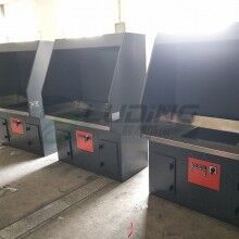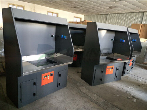 2、該打磨除塵工作臺采用我公司自己的收吸式除塵方式,且在后部抽風(fēng)口和臺面抽風(fēng)口都安裝有風(fēng)閥??梢愿鶕?jù)工件的大小或打磨位置的不同關(guān)閉相應(yīng)的風(fēng)閥.以提高其它部位的風(fēng)量來達(dá)到提高除塵效果。該種方式很大地節(jié)省了用風(fēng)量.降低了運(yùn)行費(fèi)用。