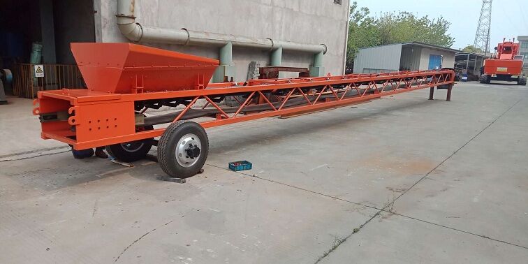 B)裝滿混凝土的攪拌車開到上料膠帶輸送機(jī)尾部,將出料口對(duì)準(zhǔn)上料膠帶輸送機(jī)進(jìn)料口,準(zhǔn)備給料。
