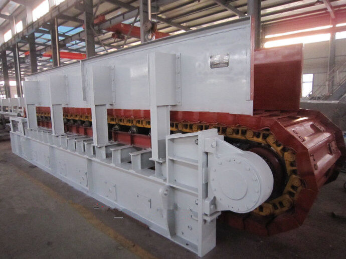 在水泥,冶金,和砂石行業(yè),使用最多的原材料是石灰石,不同行業(yè)對原材料的顆粒大小有一定的要求,如水泥廠進(jìn)生料磨的物料顆粒必須控制在25mm 以內(nèi),砂石行業(yè)對成品物料顆粒又更加嚴(yán)格,通常分為0-5,5-10,10-20,20-30等顆粒級配。而從山上開采的石頭,最大尺寸達(dá)到一米以上,需要把大物料破碎為成品物料,通常第一道破碎機(jī)采用顎式破碎機(jī),不同型號(hào)的破碎機(jī)需要采用不同規(guī)格的板式給料機(jī)給破碎機(jī)喂料,板式給料機(jī)選型必須正確,才能大幅度提高顎式破碎機(jī)的最大產(chǎn)量。正確的喂料方式是要保證顎破的動(dòng)顎和靜顎之間的料層厚度必須一樣,才能大幅度提高破碎機(jī)的產(chǎn)量,而且能保證動(dòng)顎和靜顎均勻磨損,提高顎破的壽命。以下內(nèi)容就如何和顎破配套的板式給料機(jī)選型,和客戶一起探討。