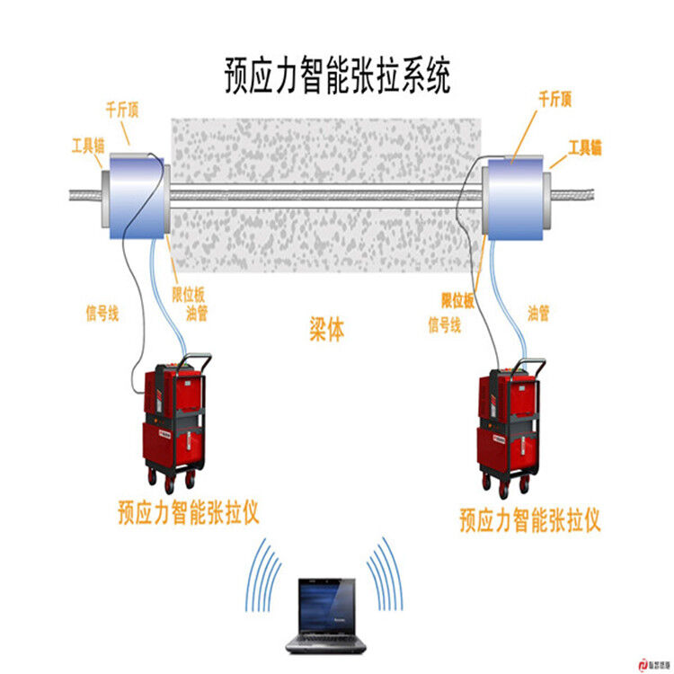 ZL-1000型預(yù)應(yīng)力全自動張拉系統(tǒng)主要是為滿足各種公路、橋梁等工程建設(shè)中預(yù)應(yīng)力梁張拉而設(shè)計的。系統(tǒng)由2臺千斤頂,2臺電動液壓站、2個高精度壓力傳感器、2個高精度位移傳感器、變頻器、伺服控制器、微機、無線數(shù)據(jù)傳輸系統(tǒng)等組成,可同時控制2臺千斤頂同步工作,構(gòu)成平衡的張拉。由計算機預(yù)設(shè)張力工藝,一鍵操作實現(xiàn)張拉過程的自動化控制,伸長值顯示,張拉數(shù)據(jù)實時曲線采集及校核報警,張拉結(jié)果記錄存儲、無線數(shù)據(jù)傳輸以及網(wǎng)絡(luò)傳輸,信息化管理。