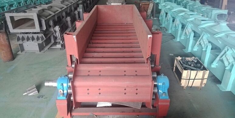 前期使用的給料機采用步進給料機構,由于料斗膨料、步進行程小等因素,導致勻料機勻料效果較差。雖經(jīng)多次改進,由于結構限制,勻料基本上是靠抓斗間歇式投放進行勻料,降低了生產(chǎn)線處理效率。