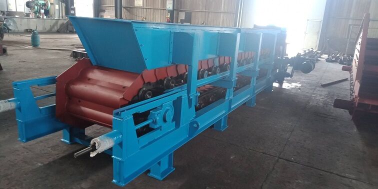 該裝置的安裝要點(diǎn)在于對(duì)鋼絲繩仲人下料口深度和彈簧拉力的調(diào)整,要以不斷料不溢料為準(zhǔn)。鋼圓盤離給料機(jī)過(guò)近,稍微有點(diǎn)料層厚度板喂機(jī)就會(huì)停止,影響正常下料;如果過(guò)高又起不到防溢料的作用。彈簧拉力過(guò)大過(guò)小也是如此。因此,調(diào)節(jié)時(shí)要反復(fù)耐心地進(jìn)行,相互配合,才能達(dá)到預(yù)期效果。