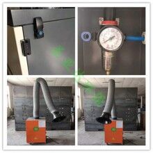 焊煙凈化器通過風(fēng)機(jī)引力作用,焊煙廢氣經(jīng)過萬向柔性吸氣臂設(shè)備向吸塵罩吸入焊煙凈化器進(jìn)風(fēng)口,進(jìn)風(fēng)口設(shè)有阻火器,火花經(jīng)過阻火器被阻留,煙塵氣體進(jìn)入沉降室,利用重力與上行氣流,先將顆粒廢氣直接將至灰斗,微型顆粒煙塵被濾芯捕集在外表面,潔凈氣體經(jīng)濾芯過濾凈化后,由濾芯流入潔凈室,潔凈空氣又經(jīng)過活性炭過濾器吸附進(jìn)步凈化后經(jīng)風(fēng)口達(dá)標(biāo)排出。