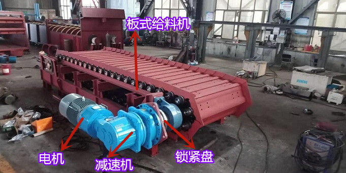 重型板式給料機(jī)由驅(qū)動(dòng)機(jī)構(gòu)、機(jī)架部、鏈板裝置、支重輪、拖鏈輪和拉緊裝置等零部件組成。