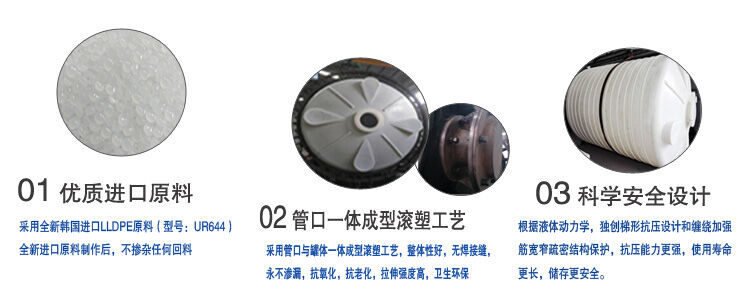 1、工業(yè)材質(zhì):采聚乙烯(LLDpe)進(jìn)口原料,滾塑工藝一體成型。