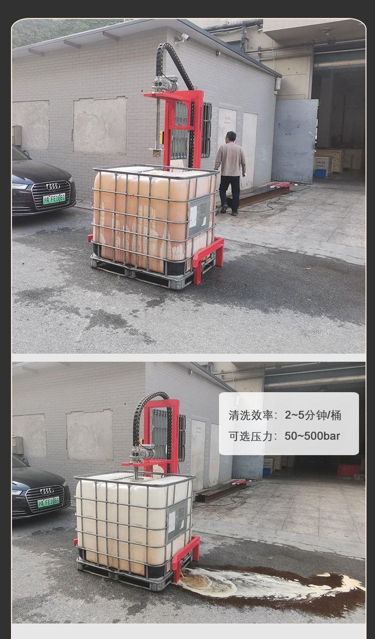 7、原料化工桶清洗設(shè)備可選配5-500公斤清洗壓力,解決各種工況的清洗問(wèn)題