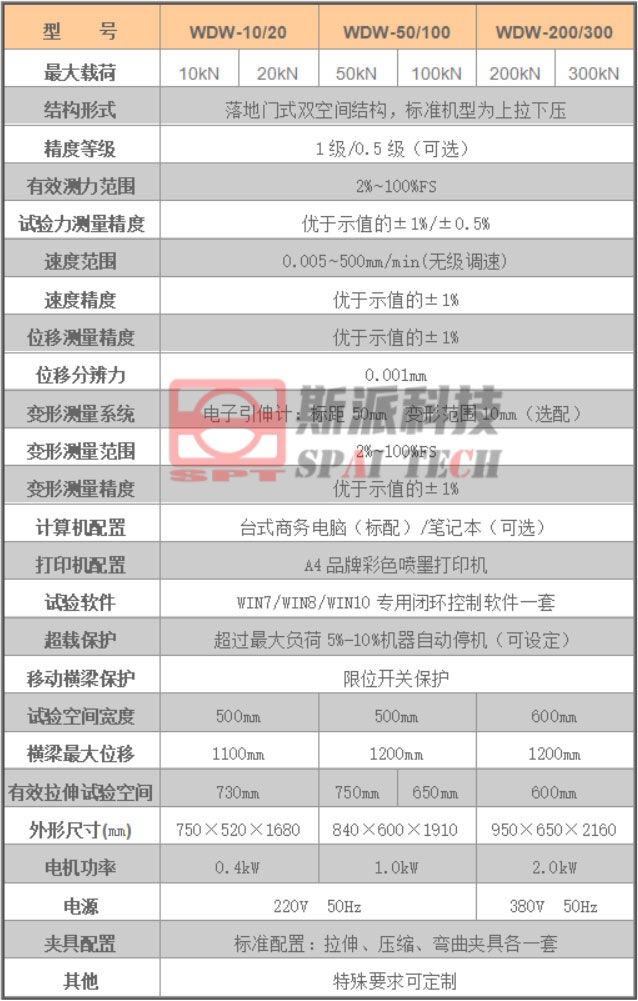 WDW系列大門(mén)式微機(jī)控制電子萬(wàn)能材料試驗(yàn)機(jī)采用穩(wěn)定的門(mén)式主機(jī)結(jié)構(gòu),選用日本松下(Panasonic)伺服調(diào)速系統(tǒng)、精密設(shè)計(jì)同步減速系統(tǒng)、臺(tái)灣上銀(HIWIN)/銀泰(PMI)滾珠絲杠、美國(guó)傳力(Trancell)/世銓(Celtron)力傳感器等主要部件,主要應(yīng)用于金屬、非金屬材料及制品的拉伸、壓縮、彎曲等力學(xué)性能試驗(yàn),具有結(jié)構(gòu)簡(jiǎn)單、穩(wěn)定可靠、外形美觀等特點(diǎn),深受廣大用戶的歡迎。