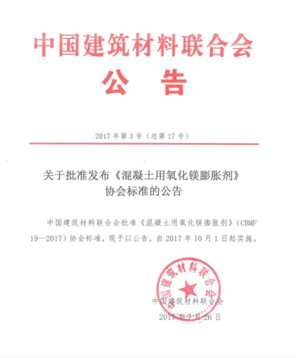 2017年7月,由中國混凝土與水泥制品協(xié)會(以下簡稱協(xié)會)組織制定的《預制混凝土箱涵工藝技術規(guī)程》和《混凝土用氧化鎂膨脹劑》兩項協(xié)會標準,通過審定并發(fā)布批準公告,標準號分別為CBMF 18-2017和CBMF 19-2017,將同時于2017年10月1日起實施。這是國務院《深化標準化工作改革方案》(國發(fā)[2015]13號)及質檢總局、國家標準委《關于培育和發(fā)展團體標準的指導意見》(國質檢標聯(lián)[2016]109號)發(fā)布后,協(xié)會與中國建筑材料聯(lián)合會(以下簡稱聯(lián)合會)聯(lián)合發(fā)布的首批協(xié)會標準,兩項標準將公開出版并發(fā)行。
