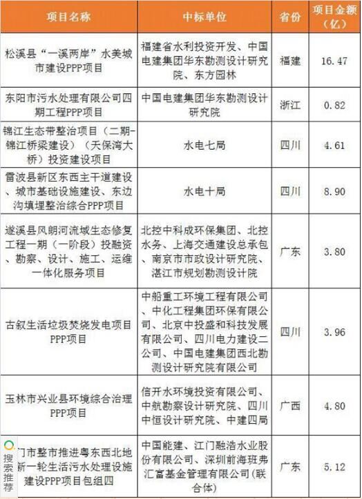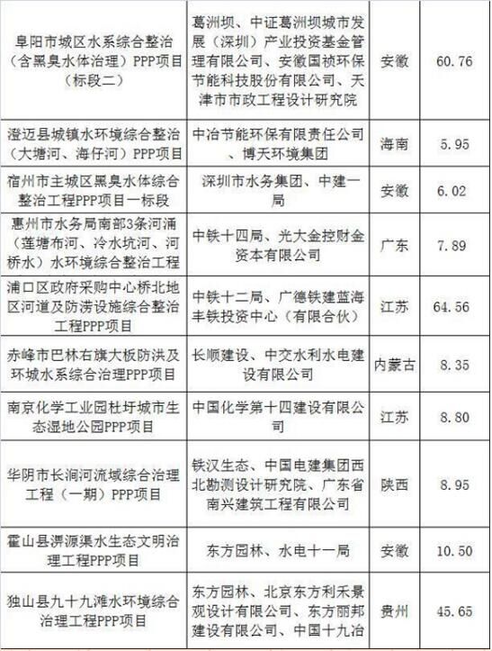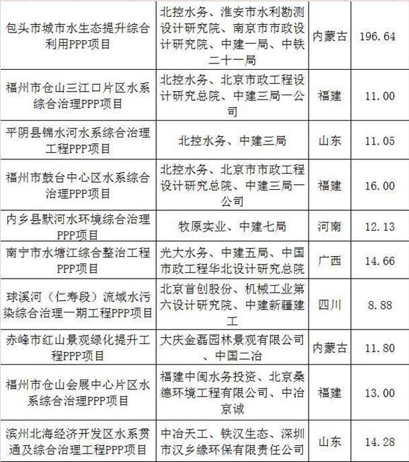 2017上半年建筑企業(yè)承攬環(huán)保工程PPP項目清單