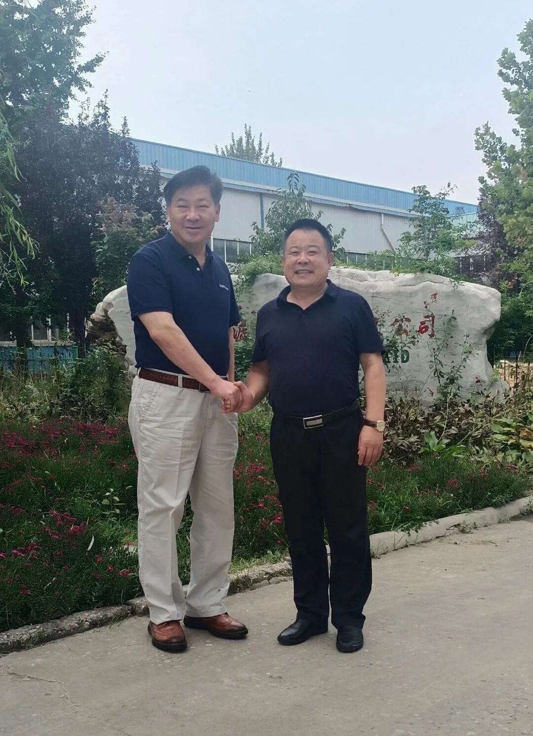 會(huì)議室交流結(jié)束之后,申總陪同符會(huì)長一行參觀了公司的集成房屋和攪拌站、PC設(shè)備的生產(chǎn)現(xiàn)場,最后在公司樓前合影留念。