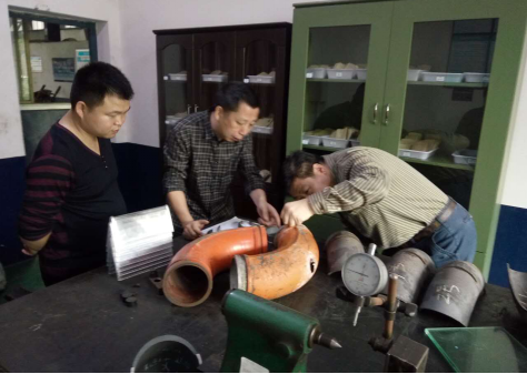 (符會長現(xiàn)場分析彎管磨損情況)